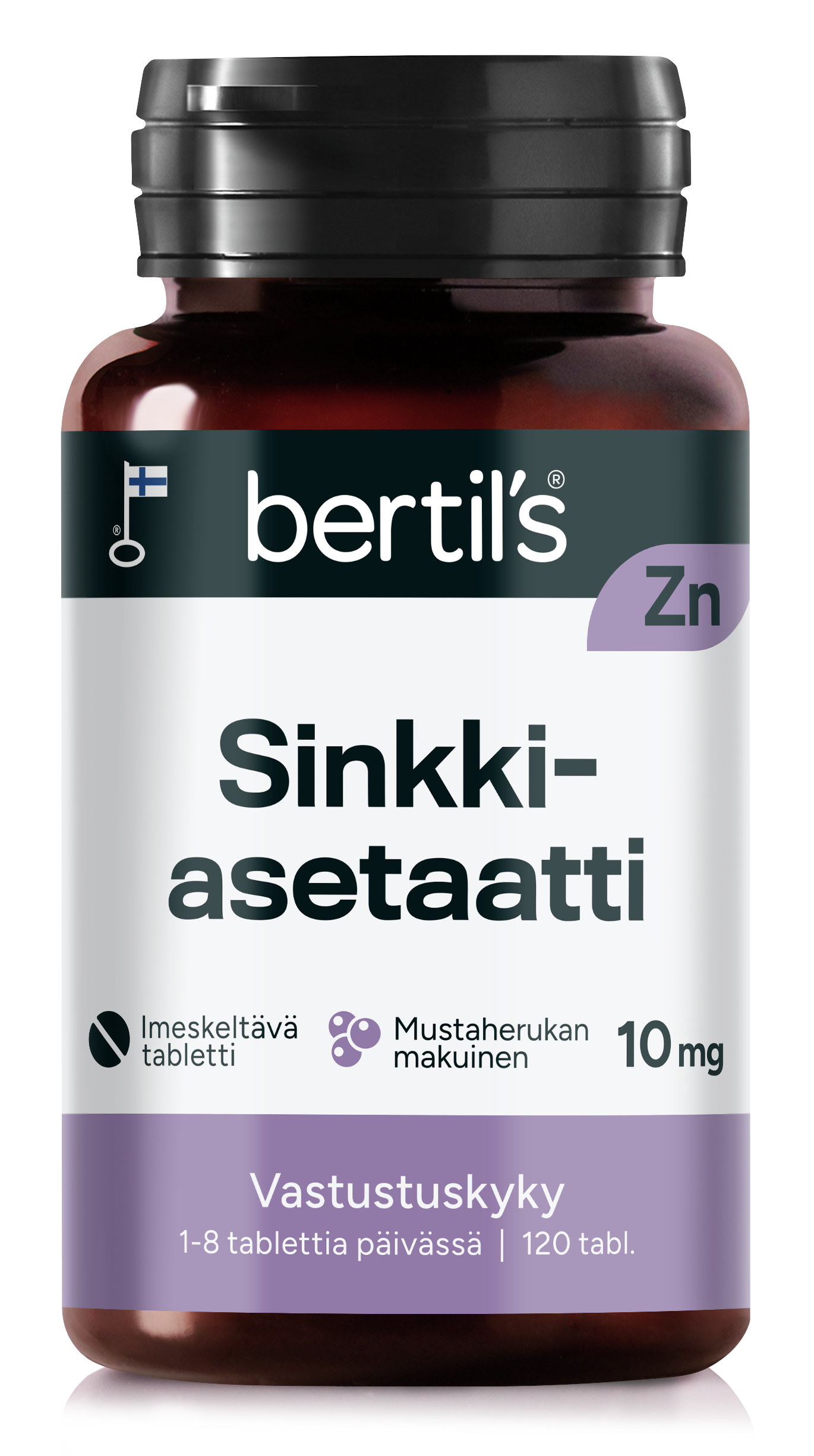 Sötningsmedlen xylitol och sorbitol, zinkacetat (Ej-EU), förtjockningsmedel natriumalginat, emulgeringsmedel magnesiumsalter av fettsyror, naturligt svartvinbär- och citronarom.